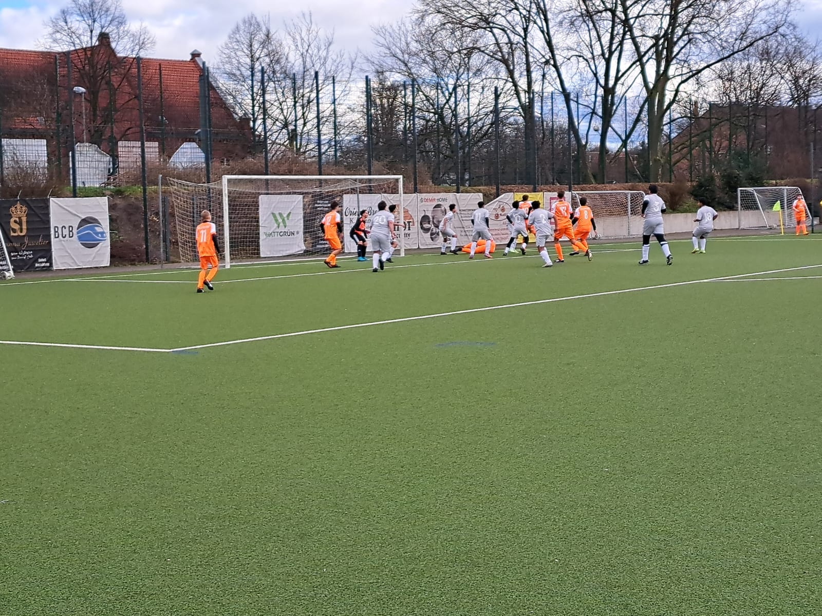 Pünktlich pfiff dann der Unparteiische an und es entwickelte sich von Anfang an ein flotter Kick auf beiden Seiten und man merkte früh, dass heute was gehen könnte. Unter den wachsamen Augen des extra angereisten Vereinspräsidenten Detlef "der graue" Thielert gab es die ersten kleinen Möglichkeiten für den BFB, welche aber nicht zielführend bzw zwingend zu Ende gespielt wurden. Die erste Riesen Chance hatte aber der Gastgeber in Person Ihres Mittelstürmers, welcher nach einer Unstimmigkeit im Abwehrzentrum plötzlich alleiner vor der Bude von Phil "Junior " Felsner auftauchte. Der Hexer von der Hahne behielt aber die Oberhand und fischte die Kugel überragend weg.